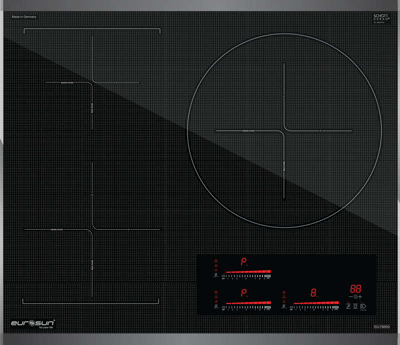Bếp từ Eurosun EU-T905G gồm 3 vùng nấu linh hoạt