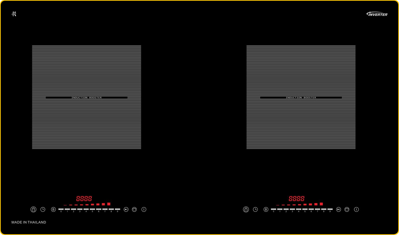 | Công suất vùng nấu trái: 2000W – Booster 2400W |
