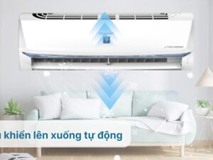 Nhằm thổi hơi lạnh đi xa và nhanh hơn, máy lạnh hoạt động với cơ chế điều khiển lên xuống tự động.