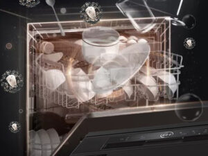 Với thiết kế các khoang để đựng bát đĩa dao thìa giúp máy hoạt động không làm sứt mẻ bát, ly, cốc, …. máy còn có thể điều chỉnh độ cao giàn trên cho phép tăng diện tích không gian chứa đồ trong khoang máy rửa bát để phù hợp với các dụng cụ trong gia đình.
