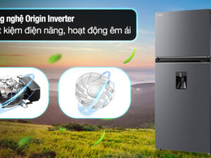 Công nghệ Origin Inverter: Tiết kiệm điện, vận hành êm ái, hơi lạnh được tỏa ra một cách đều đặn giúp nhiệt độ ổn định, đảm bảo thực phẩm giữ trọn độ tươi ngon.