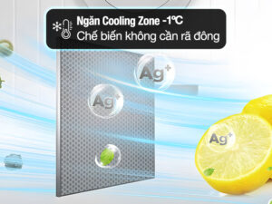 – Ngăn Cooling Zone -1°C: Cấp đông bề mặt thực phẩm tươi sống, giúp duy trì độ tươi ngon và chất dinh dưỡng. Khi cần, bạn có thể sử dụng ngay mà không cần rã đông. Ngoài ra, ngăn đông mềm -1°C Cooling Zone còn hỗ trợ bảo quản tốt các loại đồ uống, thực phẩm mềm (như phô mai, sữa chua,…).